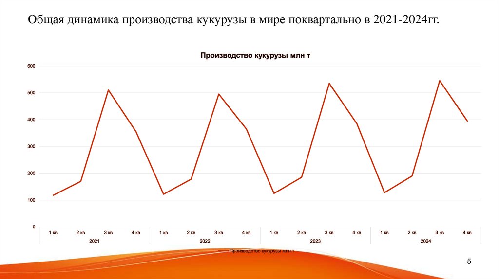 Общая динамика производства кукурузы в мире поквартально в 2021-2024гг.5