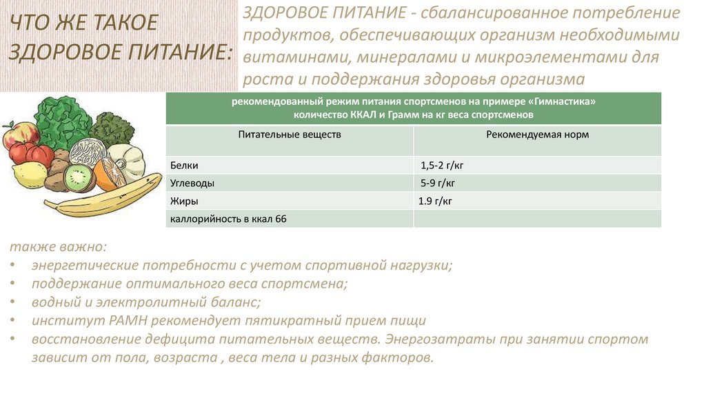 рекомендованный режим питания спортсменов на примере «Гимнастика»