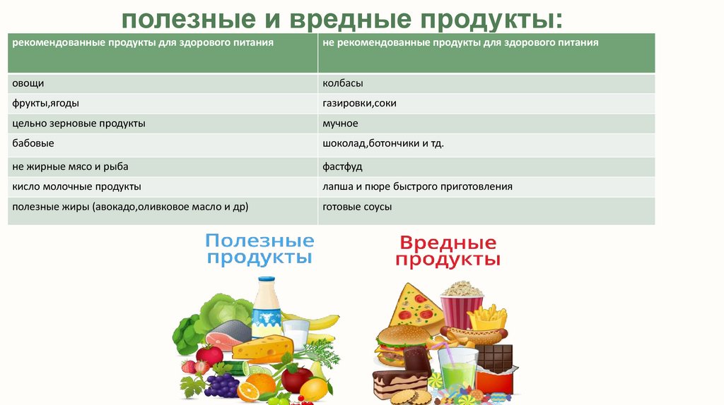 полезные и вредные продукты:рекомендованные продукты для здорового питания