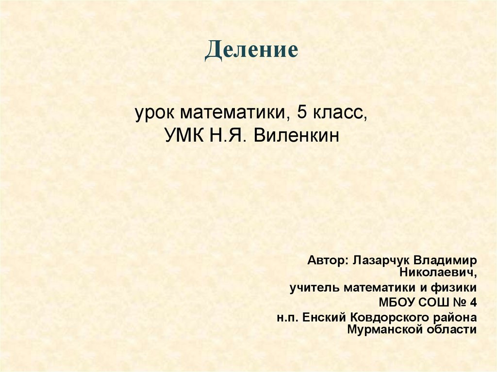 Презентация _Деление_ 5 класс (УМК Н.Я. Виленкин)