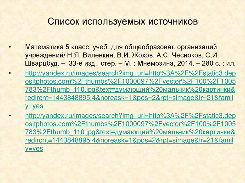 Список используемых источниковМатематика 5 класс: учеб. для общеобразоват. организаций