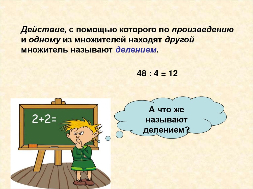 Действие, с помощью которого по произведениюи одному из множителей находят другой
