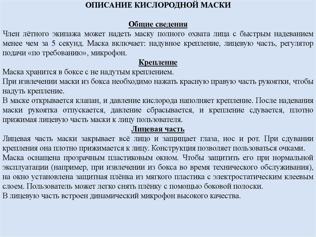 Система обеспечивает подачу кислорода членам лётного экипажа при резком