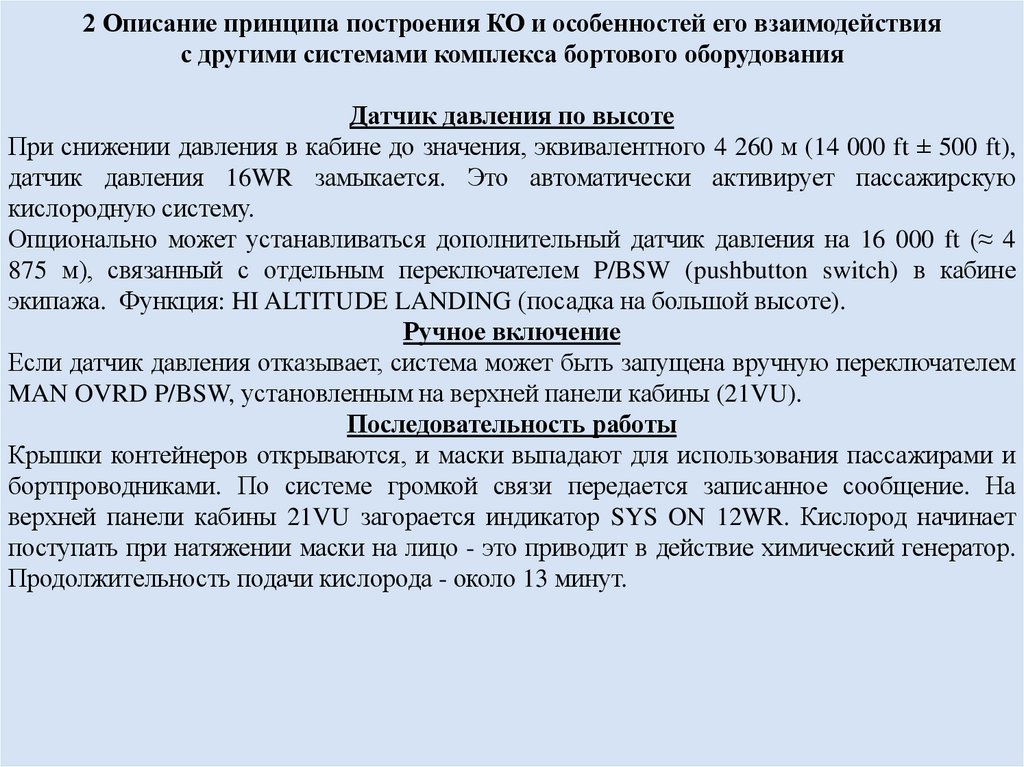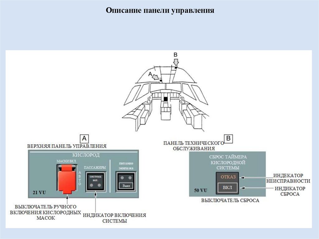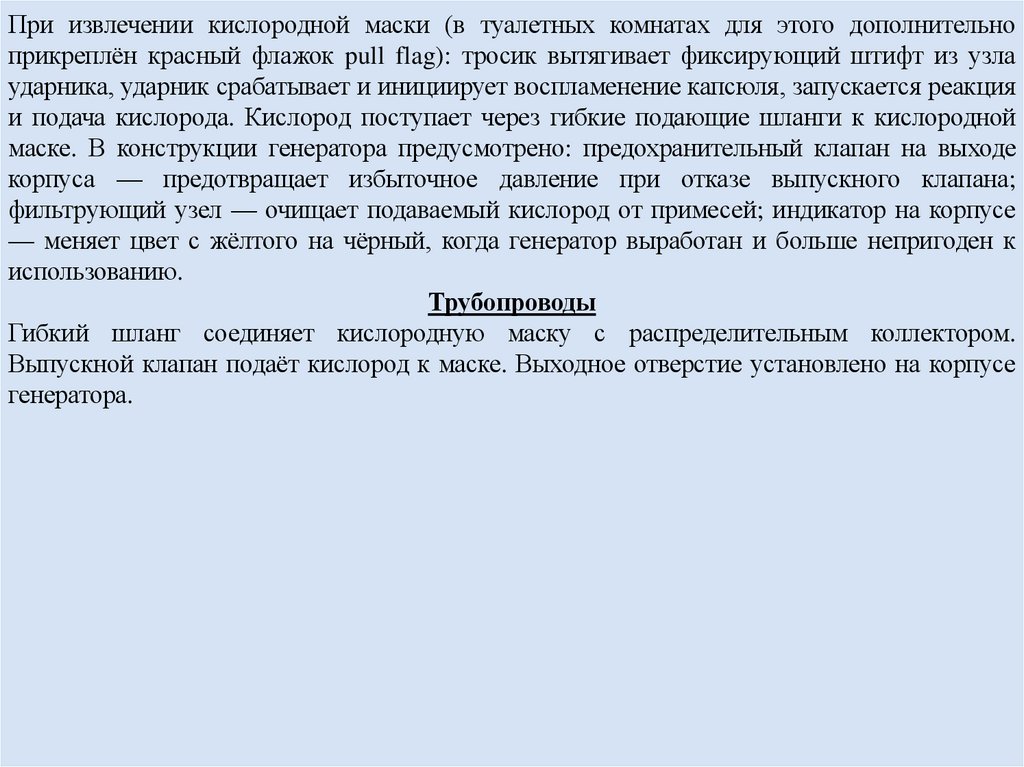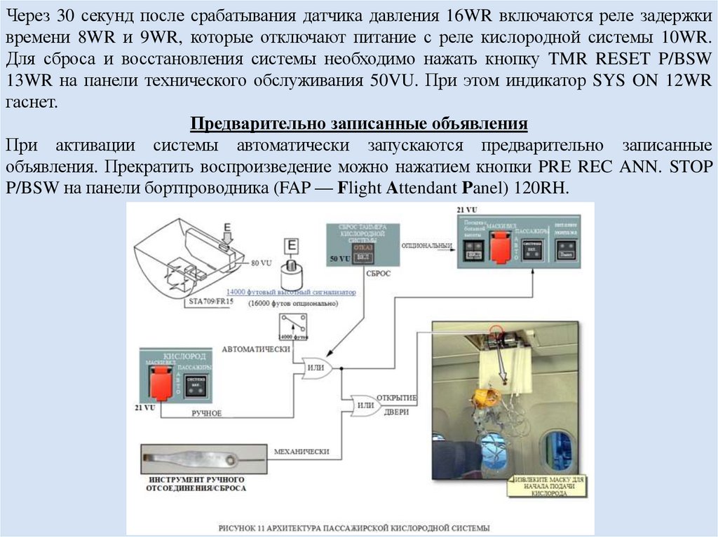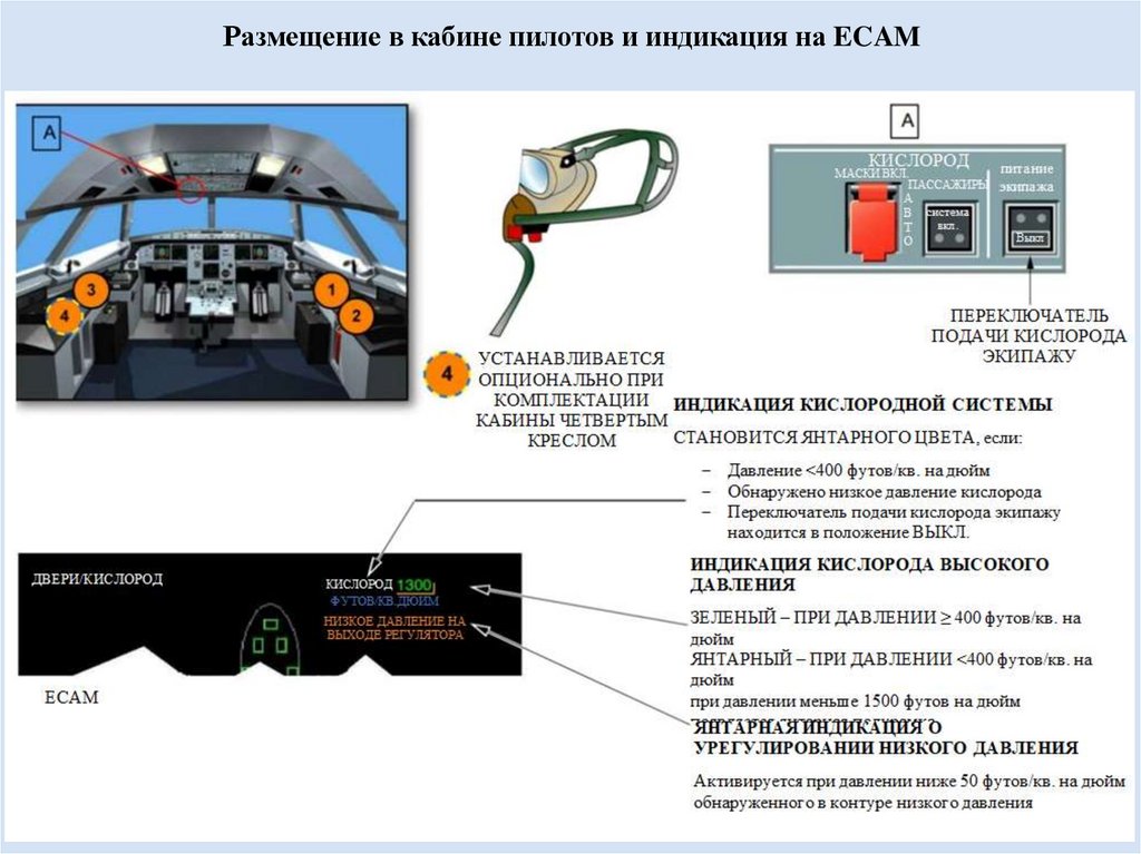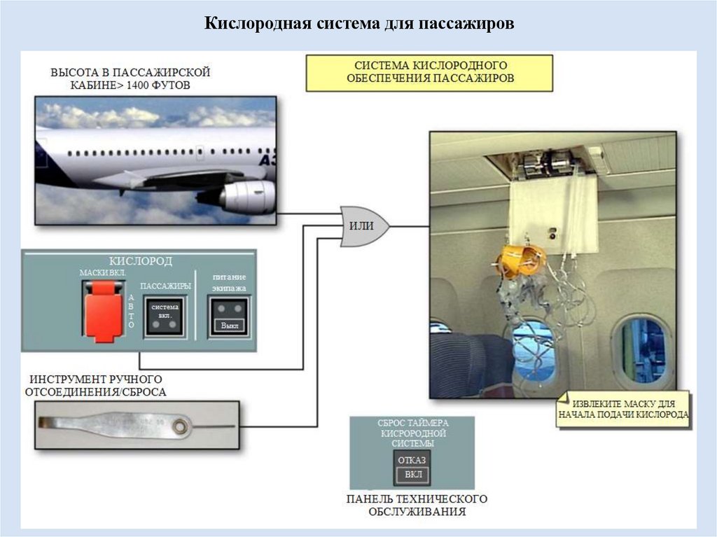 Аварийный кислород для пассажиров и экипажа (бортпроводников) подаётся из