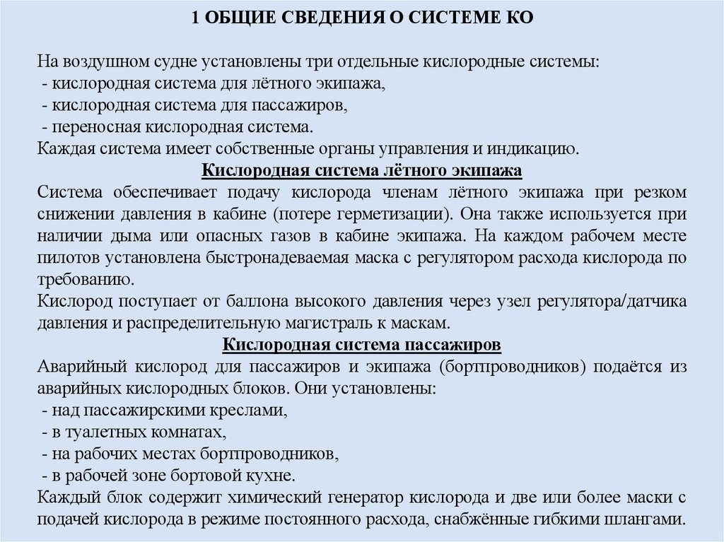 1 ОБЩИЕ СВЕДЕНИЯ О СИСТЕМЕ КОНа воздушном судне установлены три отдельные кислородные системы: