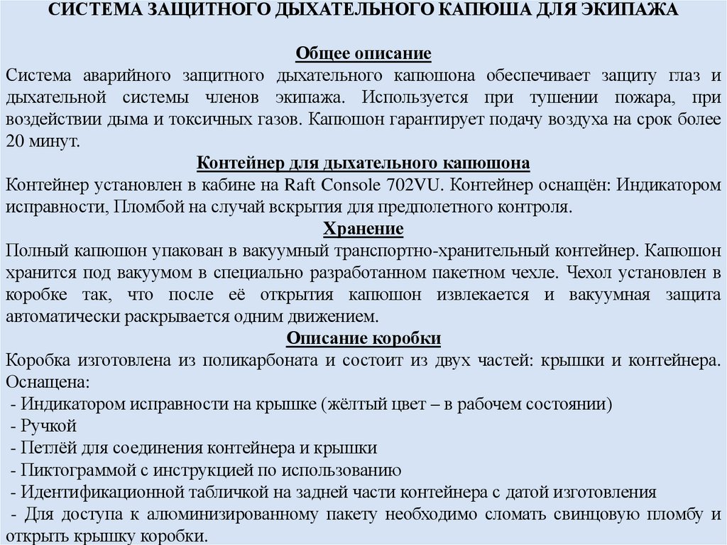 установлено в пульте с правой стороны кабины экипажа. Переносное дыхательное