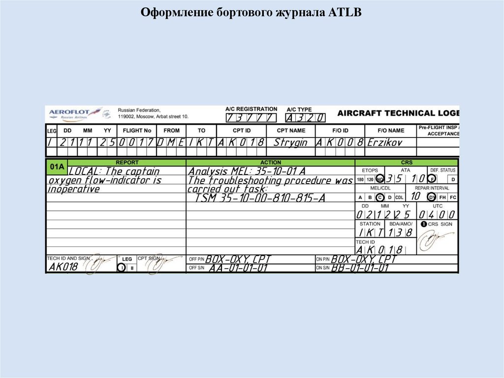 3.6 Заполненный бортовой журнал после выявления и устранения неисправности