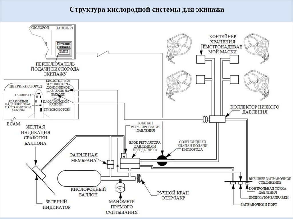 пассажирской кабине. Оно используется: для подачи кислорода членам экипажа и