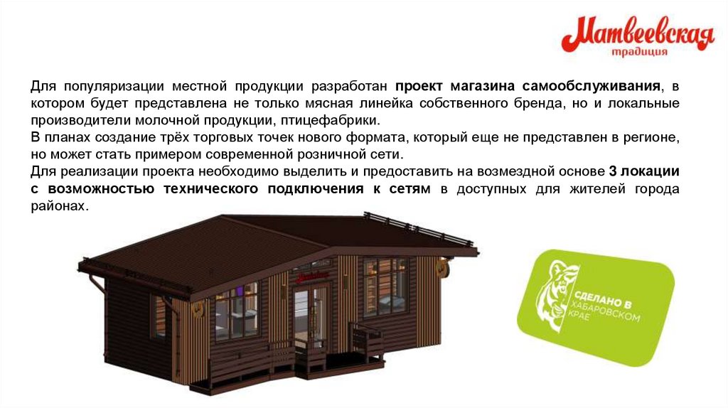 Для популяризации местной продукции разработан проект магазина самообслуживания, вкотором будет представлена не только мясная линейка собственного бренда, но и локальные