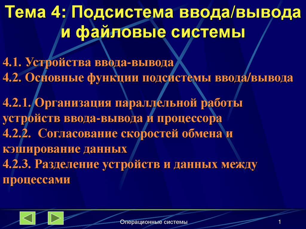 1. Тема 4: Подсистема ввода/вывода и файловые системы