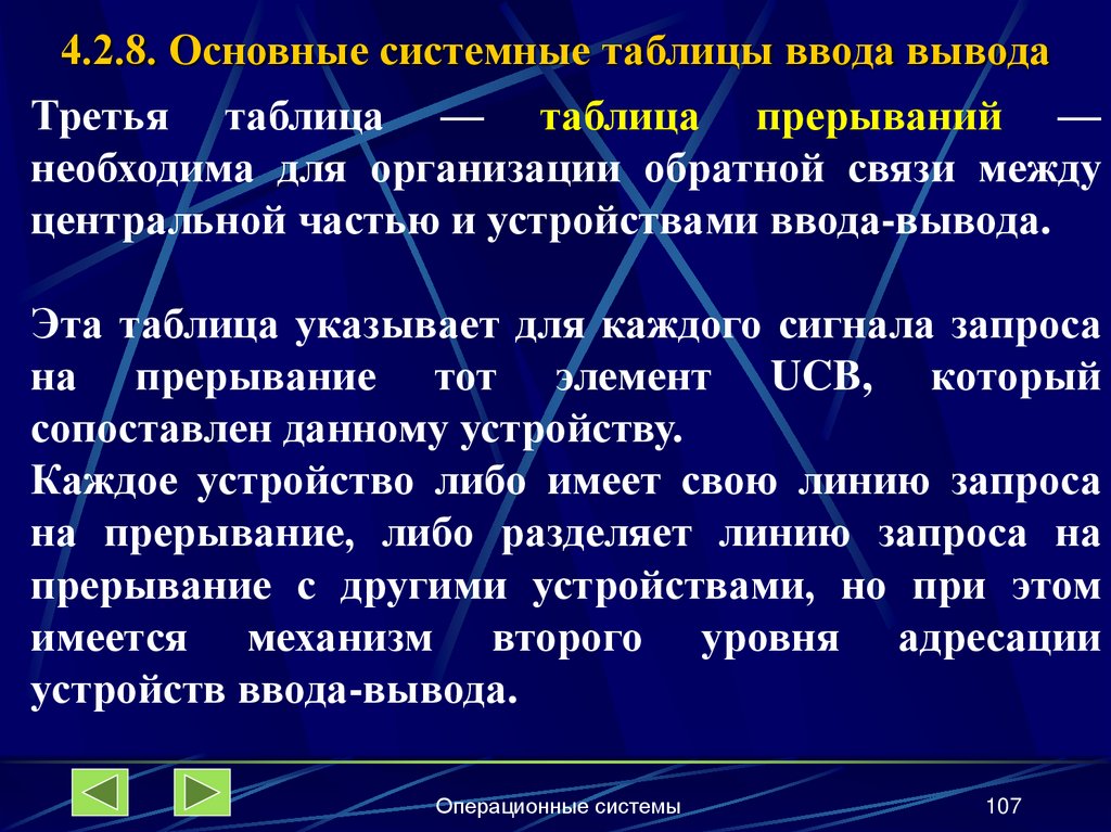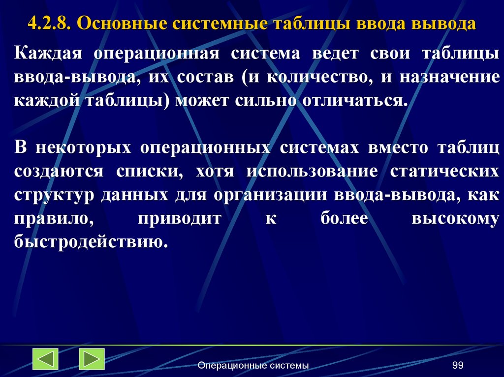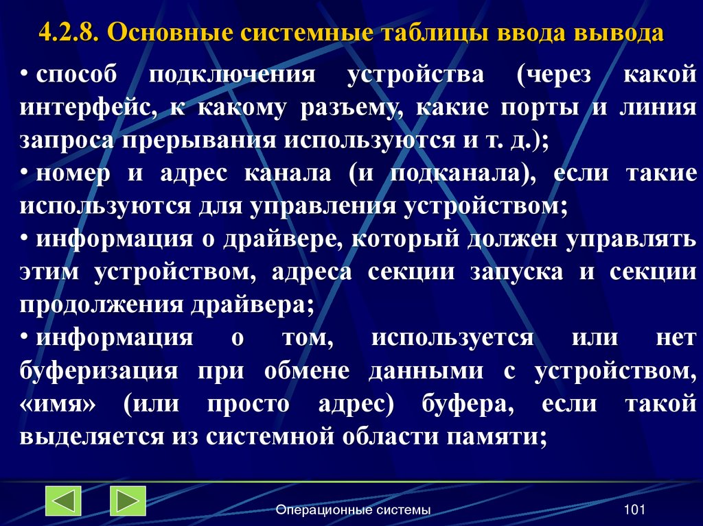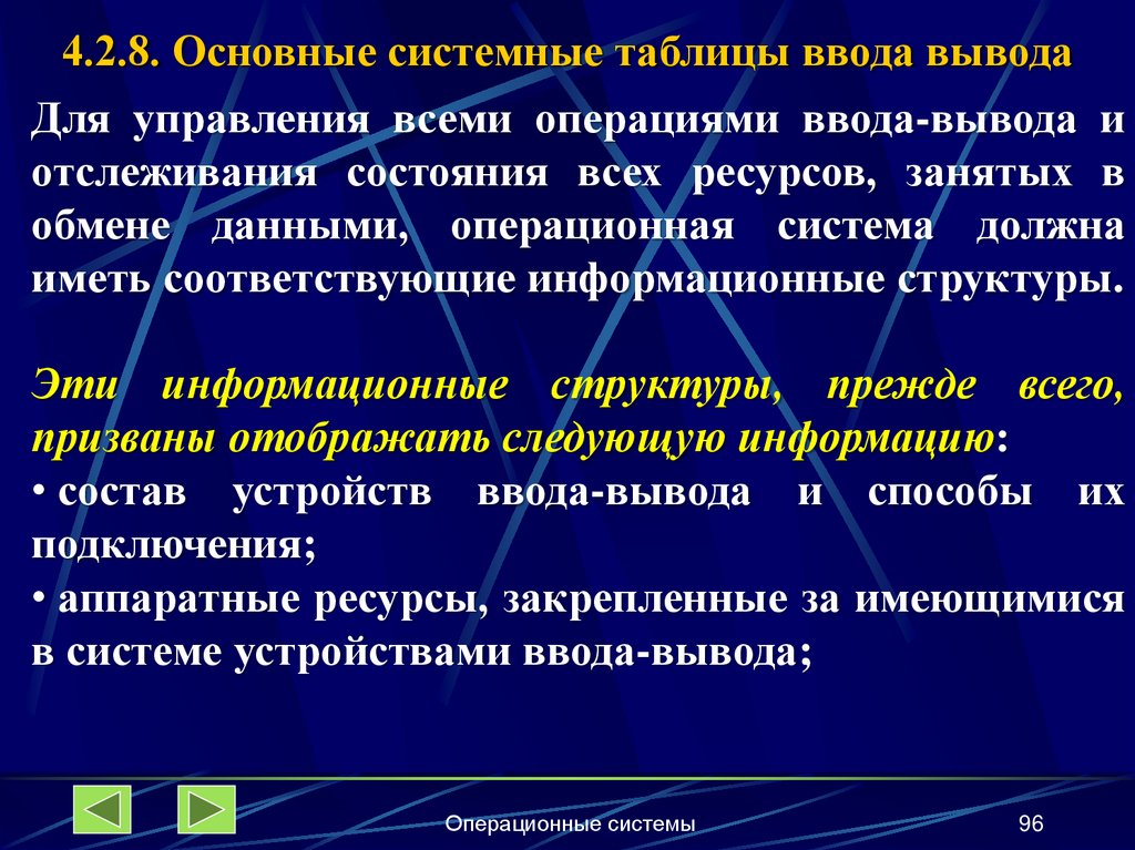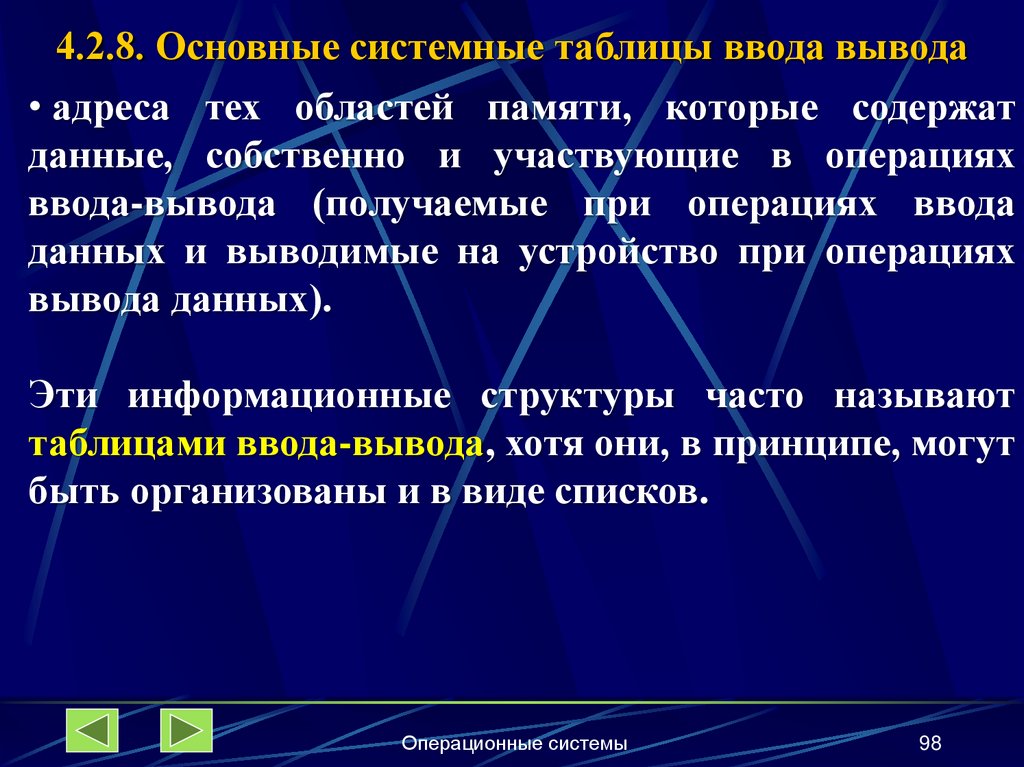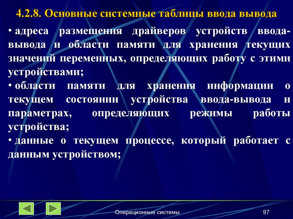 4.2.8. Основные системные таблицы ввода-вывода