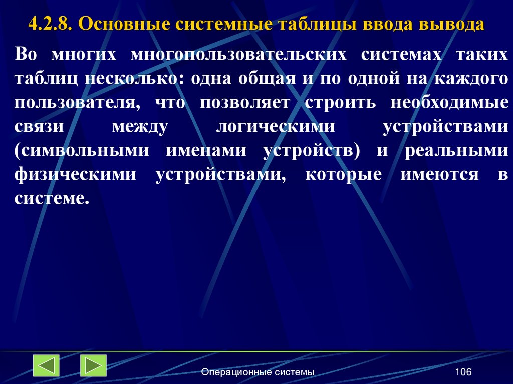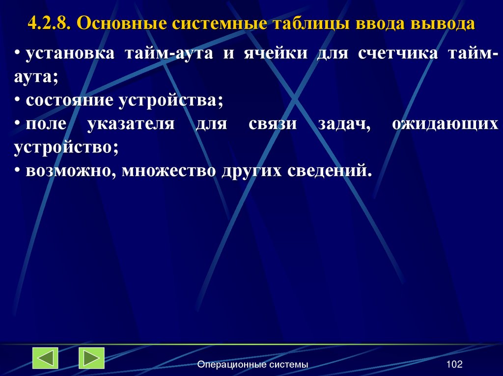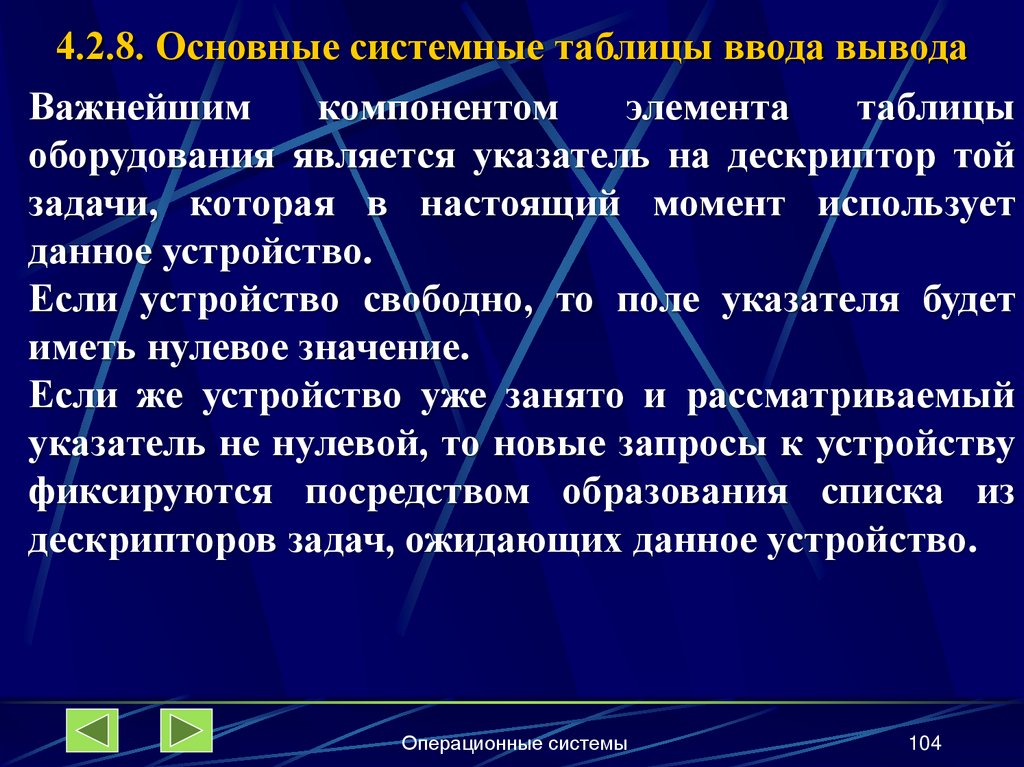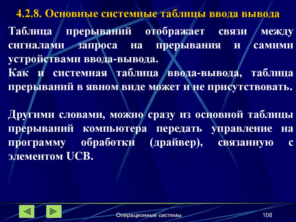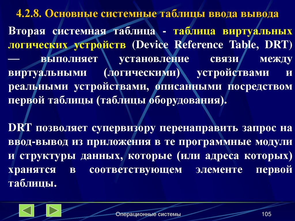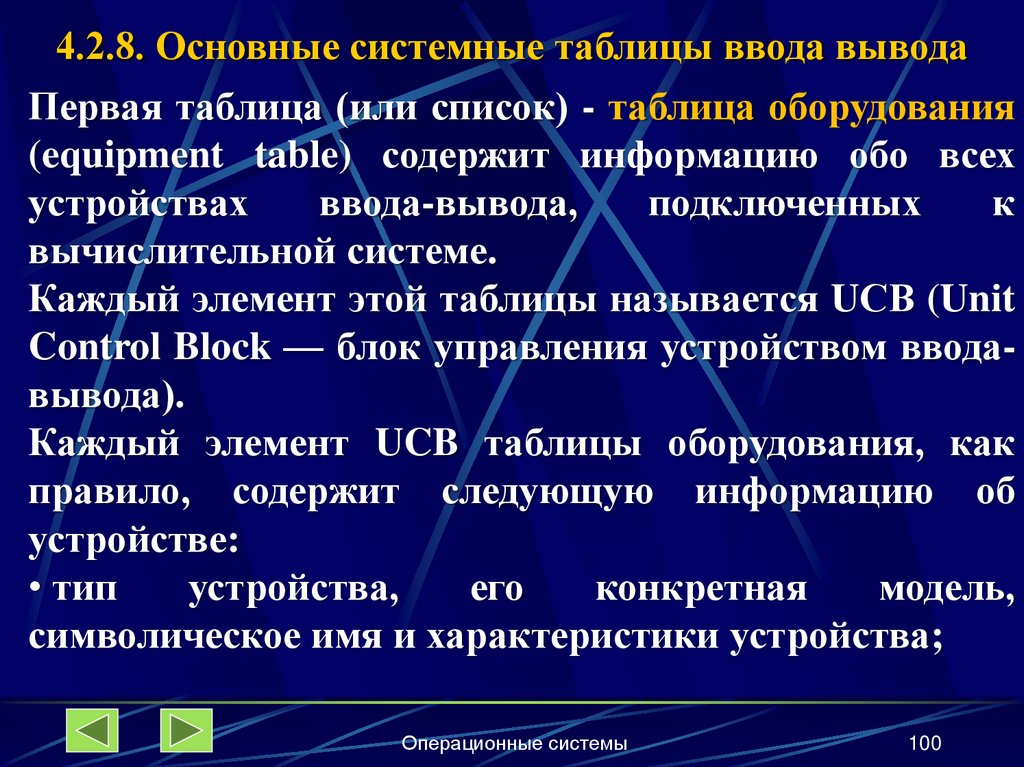 4.2.8. Основные системные таблицы ввода-вывода