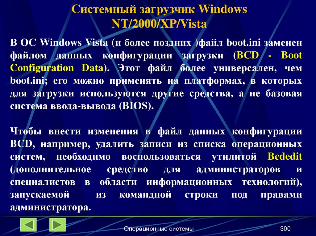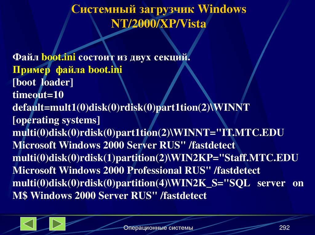 boot.ini; его можно применять на платформах, в которых