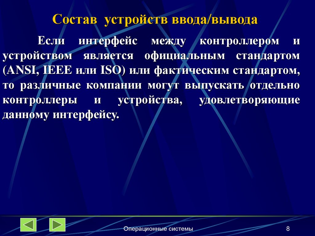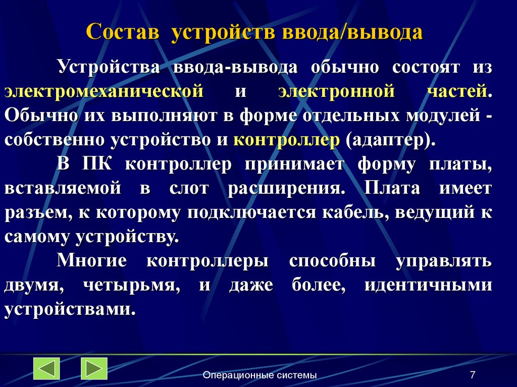 Состав устройств ввода/выводаУстройства ввода-вывода обычно состоят из