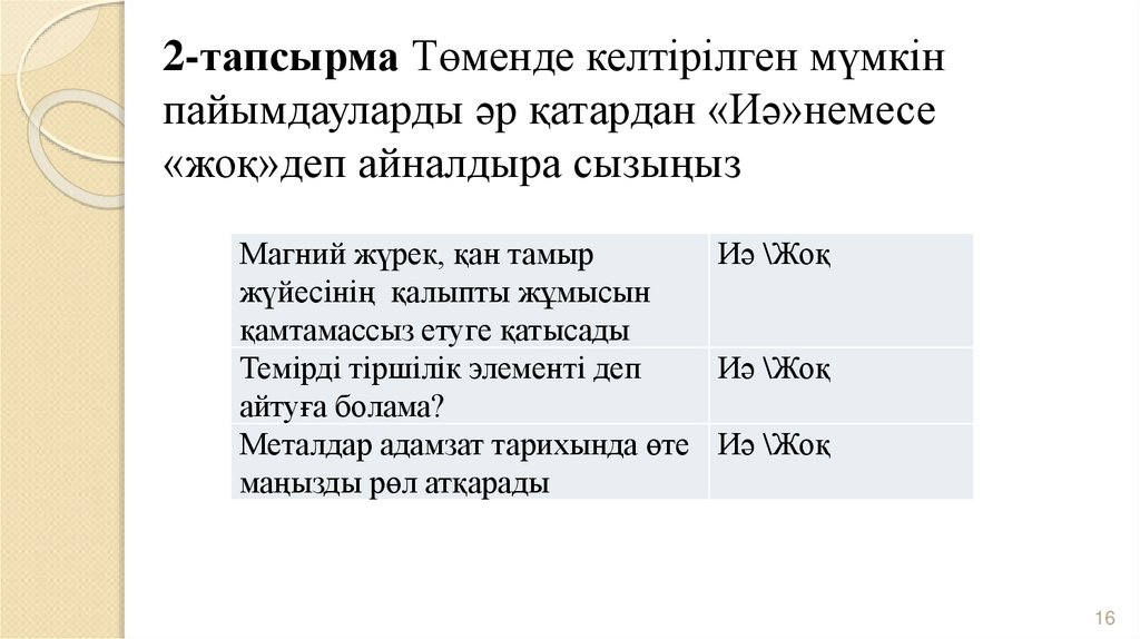 2-тапсырма Төменде келтірілген мүмкінпайымдауларды әр қатардан «Иә»немесе