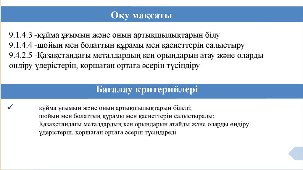 9.4.2.5 -Қазақстандағы металдардың кен орындарын атау және оларды
