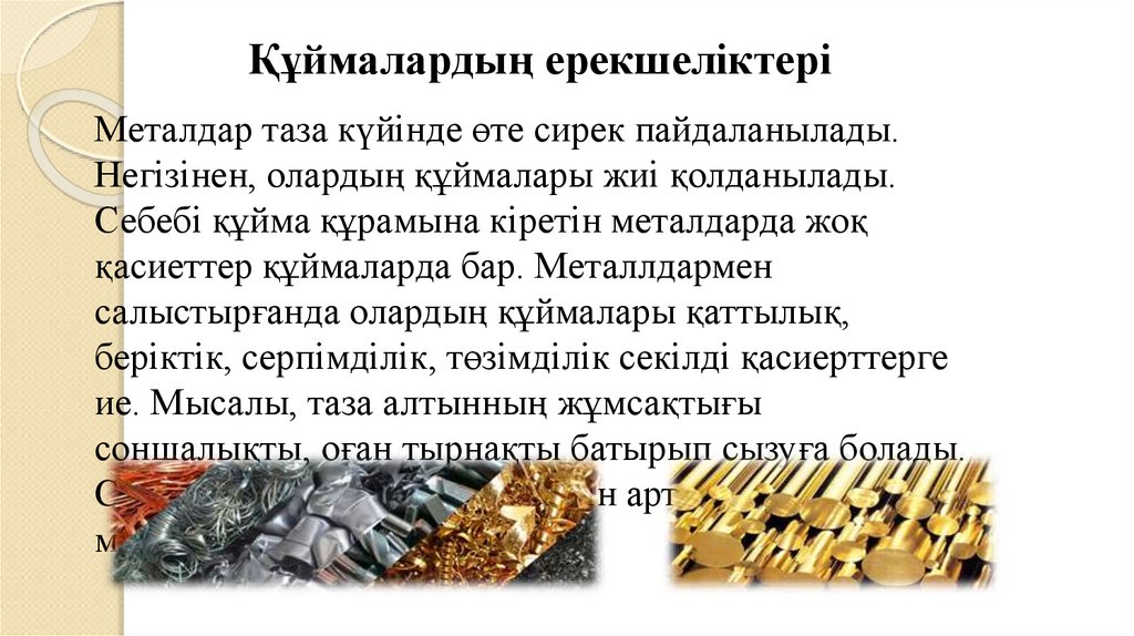 Құймалардың ерекшеліктеріМеталдар таза күйінде өте сирек пайдаланылады.