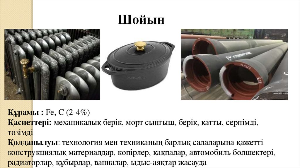 шойын мен болаттың құрамы мен қасиеттерін салыстырады;