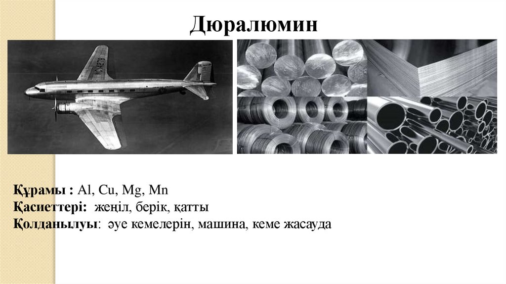 ДюралюминҚұрамы : Al, Cu, Mg, Mn