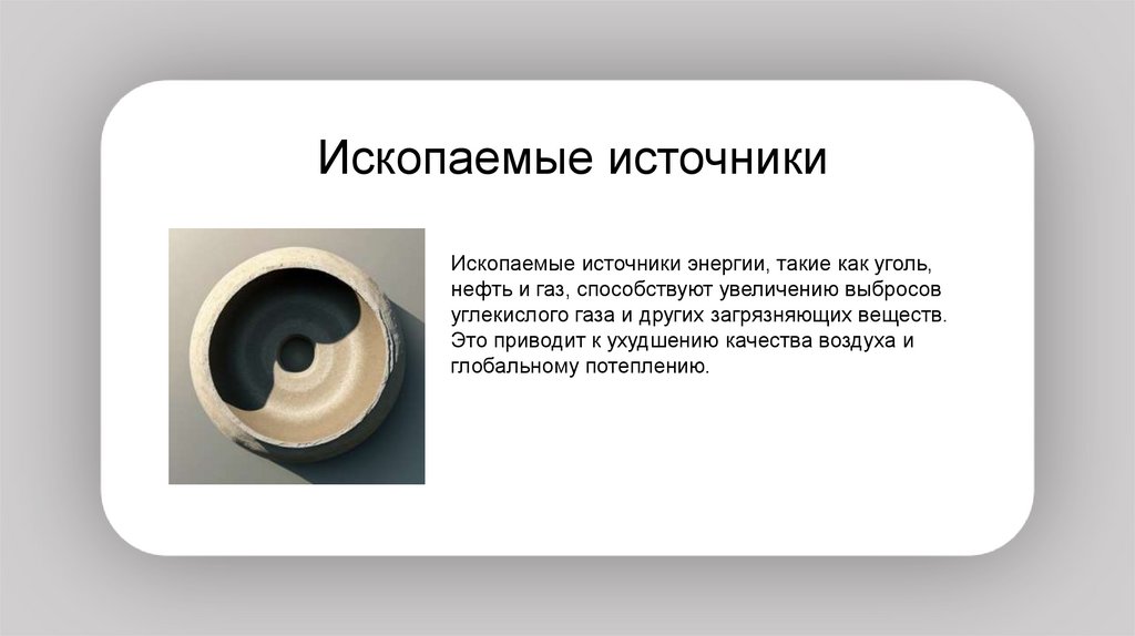 Ископаемые источникиИскопаемые источники энергии, такие как уголь,