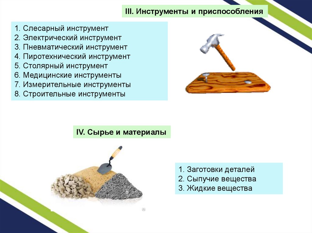 1. Выполнение работ с инструментами, предметами труда и средствами производства и,