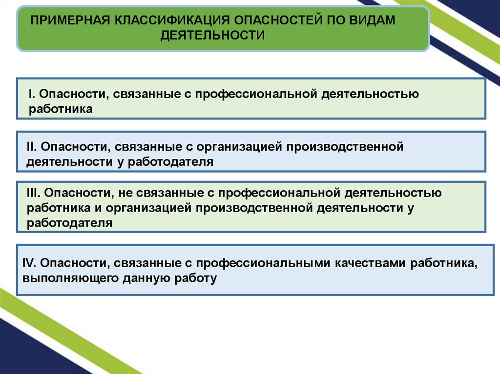 ПРИМЕРНАЯ КЛАССИФИКАЦИЯ ОПАСНОСТЕЙ ПО ВИДАМДЕЯТЕЛЬНОСТИ