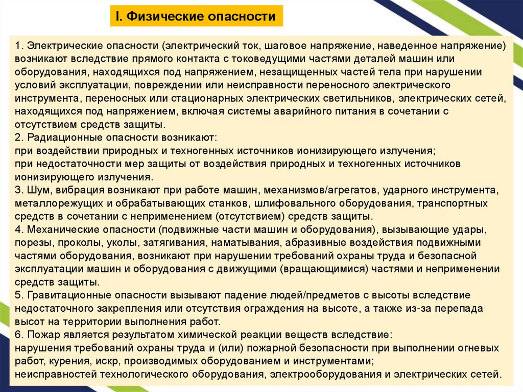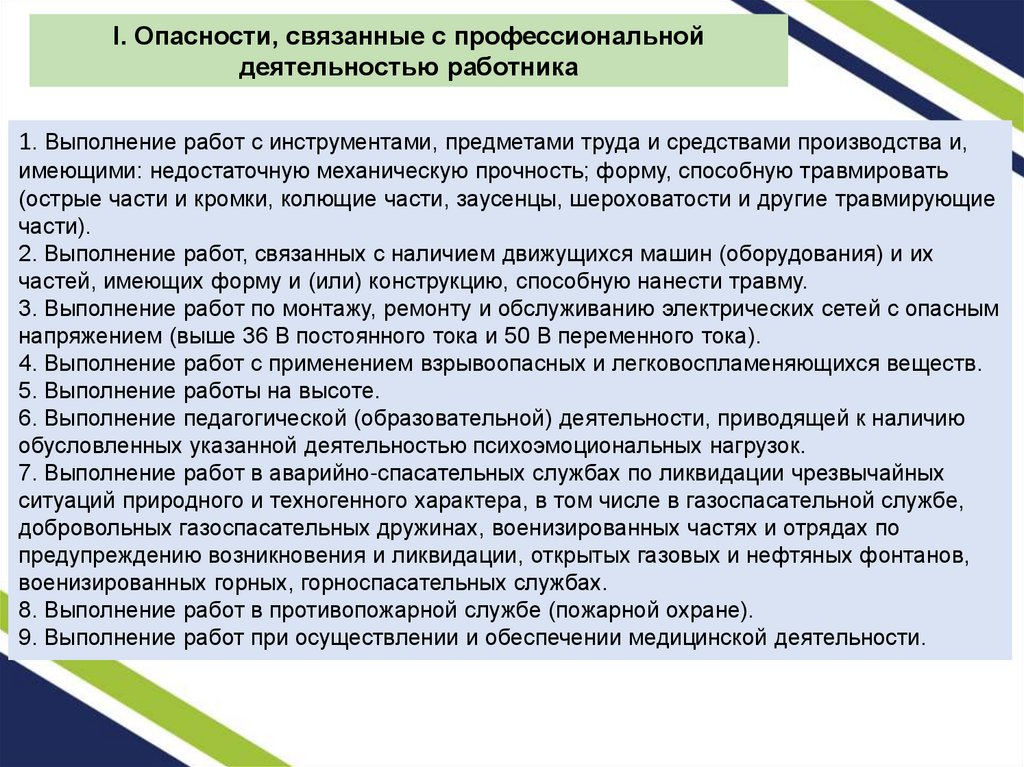 I. Опасности, связанные с профессиональнойдеятельностью работника