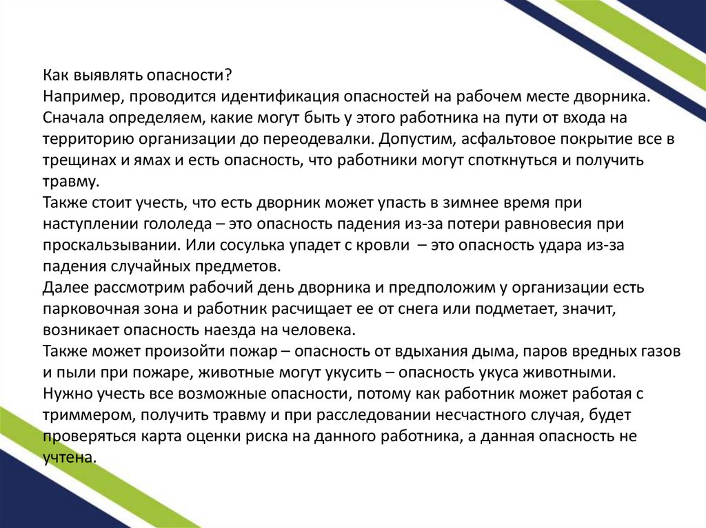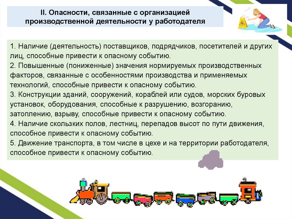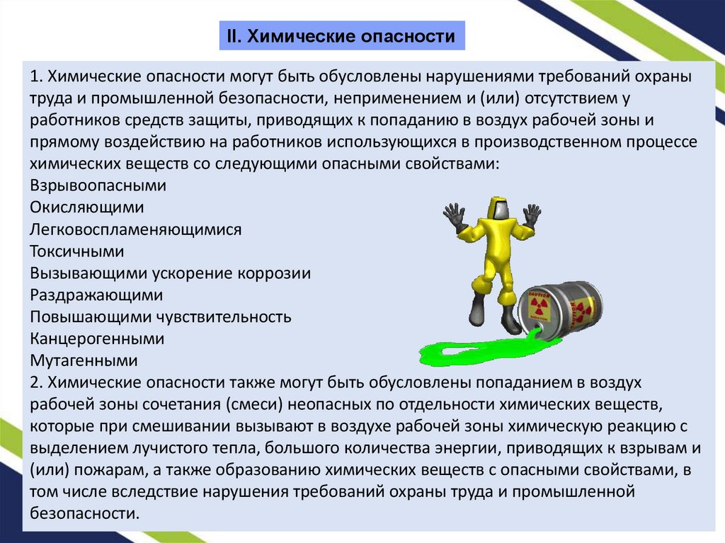 II. Опасности, связанные с организациейпроизводственной деятельности у работодателя