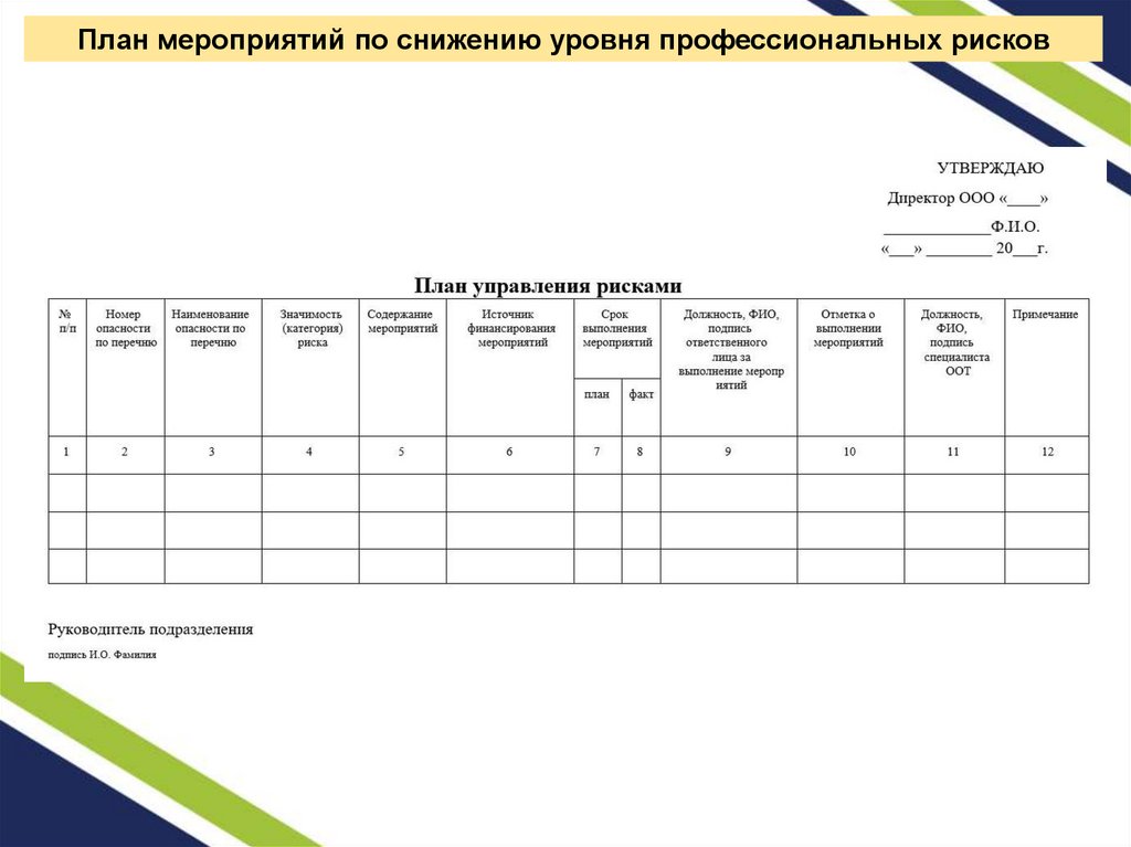 перечне опасностей и мер по управлению ими в рамках СУОТ