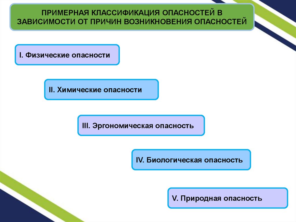 ПРИМЕРНАЯ КЛАССИФИКАЦИЯ ОПАСНОСТЕЙ ВЗАВИСИМОСТИ ОТ ПРИЧИН ВОЗНИКНОВЕНИЯ ОПАСНОСТЕЙ