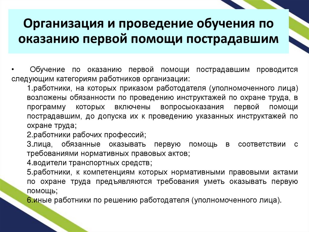 Организация и проведение обучения пооказанию первой помощи пострадавшим