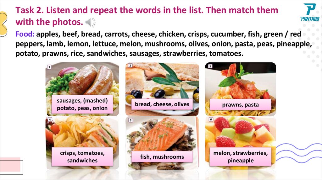 Task 2. Listen and repeat the words in the list. Then match themwith the photos.