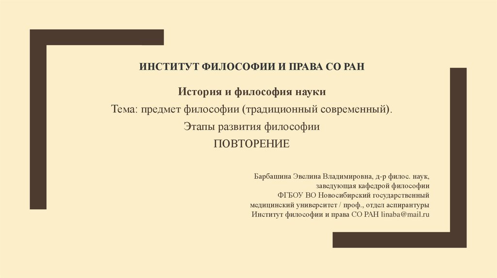ИНСТИТУТ ФИЛОСОФИИ И ПРАВА СО РАНИстория и философия науки