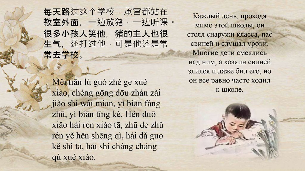 每天路过这个学校 承宫都站在教室外面 一边放猪 一边听课。