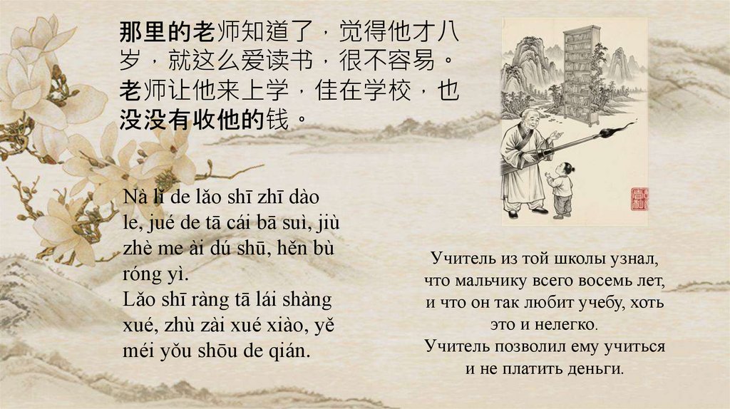 那里的老师知道了 觉得他才八岁 就这么爱读书 很不容易。