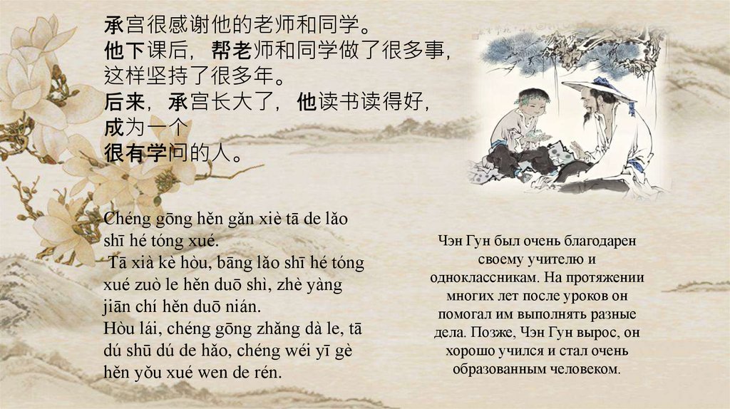 承宫很感谢他的老师和同学。他下课后 帮老师和同学做了很多事