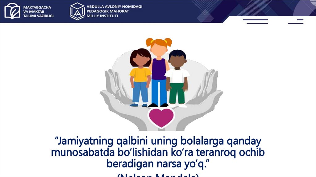 “Jamiyatning qalbini uning bolalarga qandaymunosabatda bo‘lishidan ko‘ra teranroq ochib