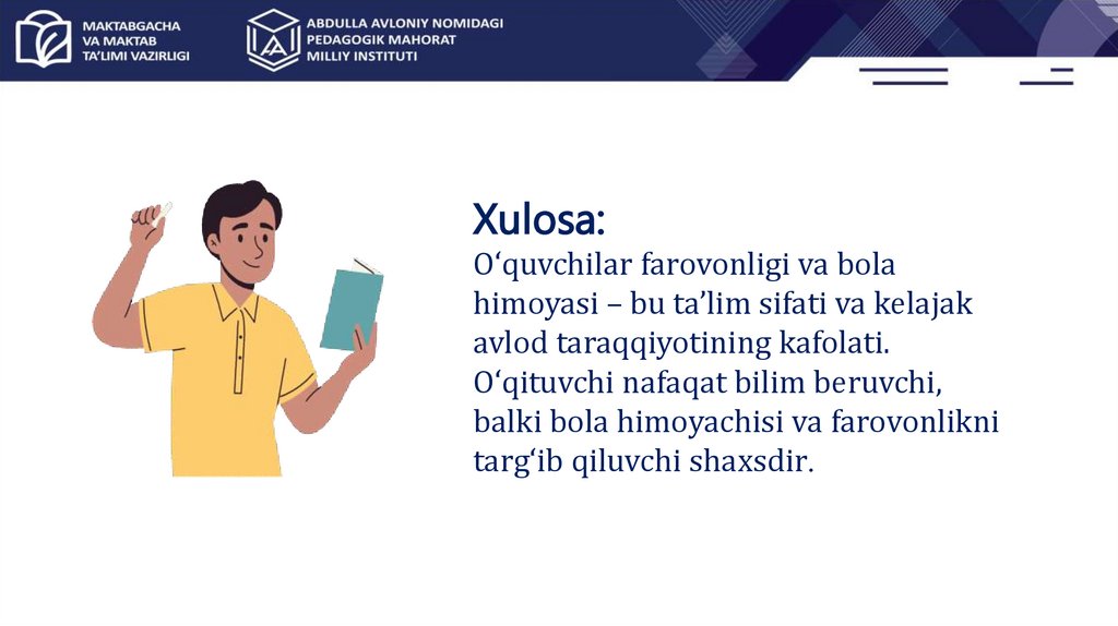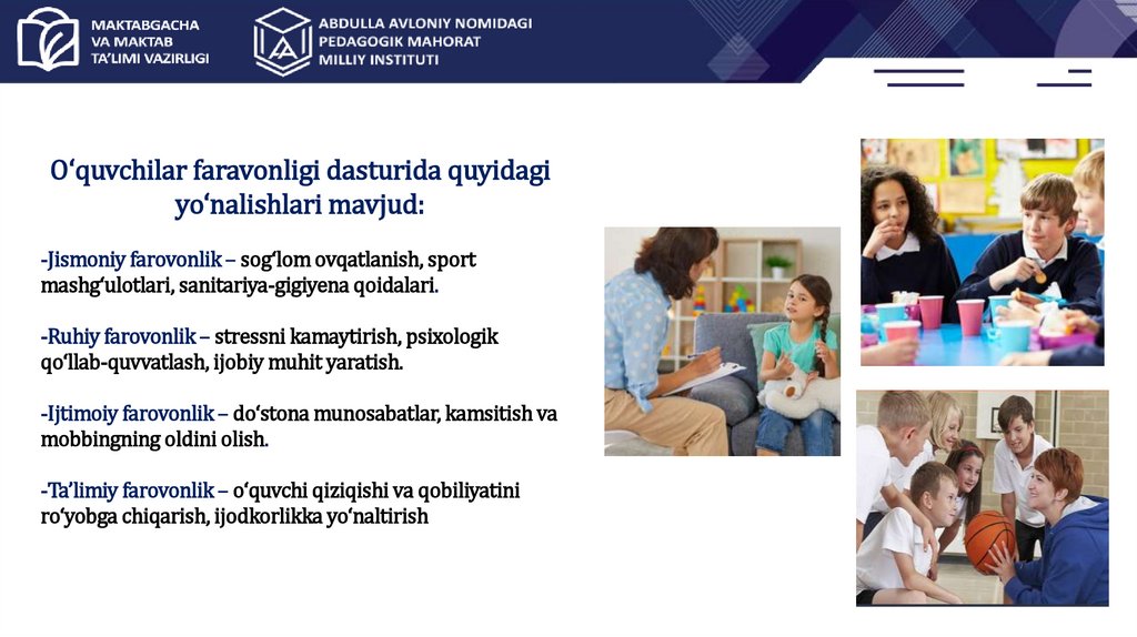1. O‘QUVCHILAR FAROVONLIGI DASTURI, BOLA HIMOYASI TUSHUNCHASI HAMDA MEZONLARI BILAN TANISHTIRISH