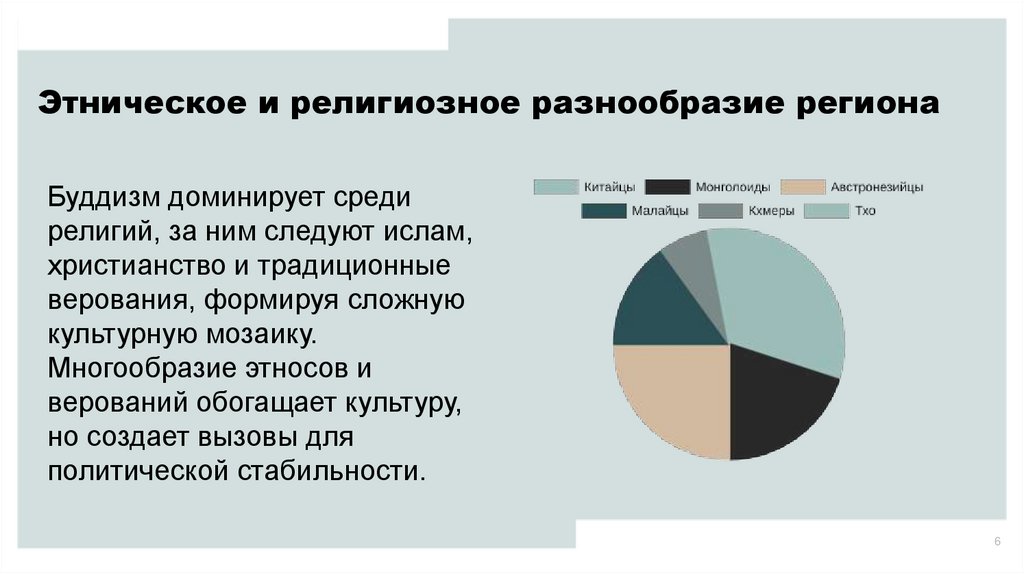 Этническое и религиозное разнообразие регионаБуддизм доминирует среди