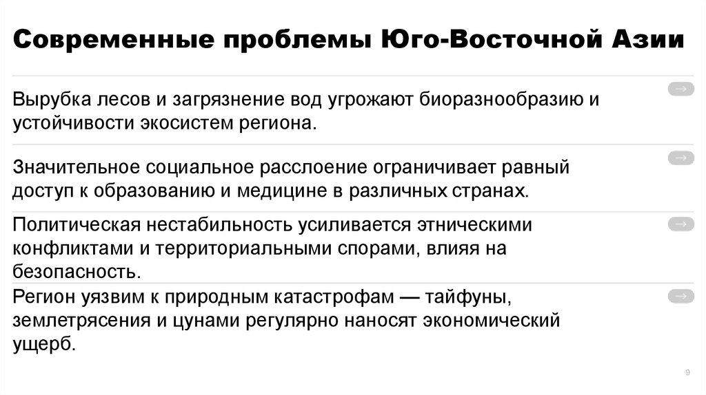Современные проблемы Юго-Восточной АзииВырубка лесов и загрязнение вод угрожают биоразнообразию и