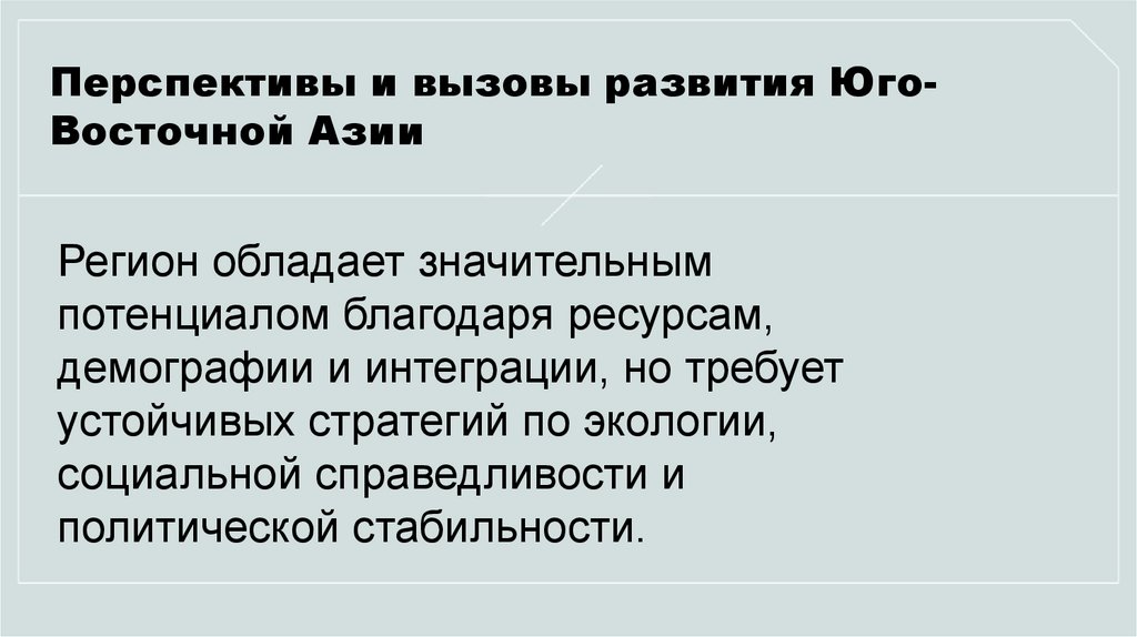 Перспективы и вызовы развития ЮгоВосточной АзииРегион обладает значительным