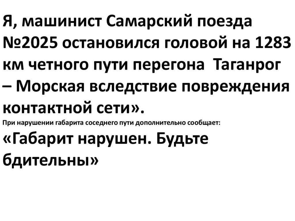 При нарушении габарита соседнего пути дополнительно сообщает: