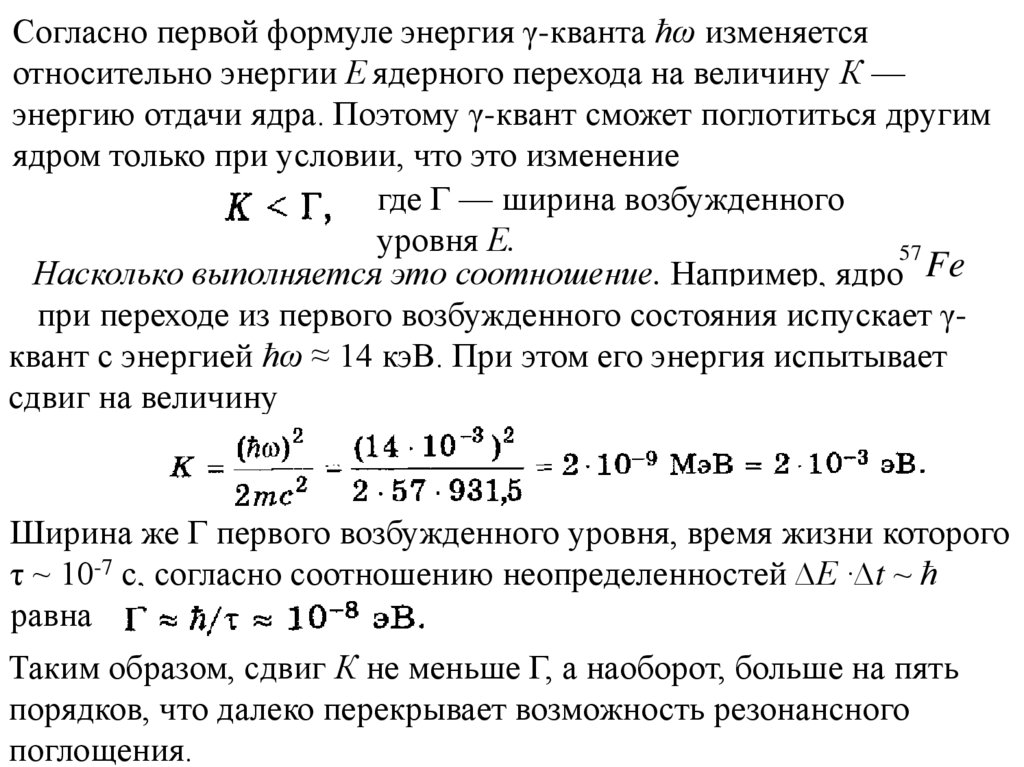 Метод ядерного гамма-резонанса основан наэффекте резонансного поглощения без отдачи