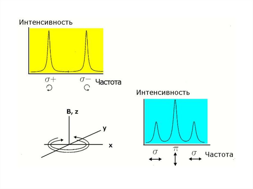 Эффект Зеемана — расщепление линий атомныхспектров в магнитном поле.