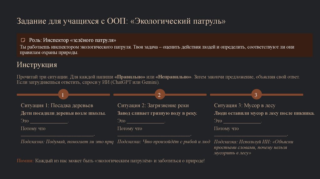 окружающей среды?» Сравните ответ искусственного интеллекта с вашими собственными выводами.
