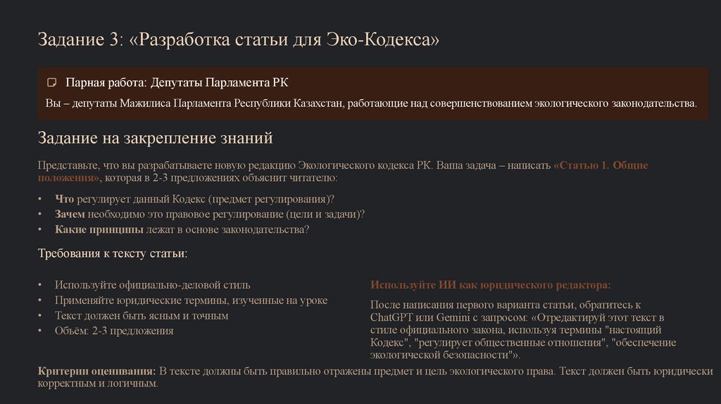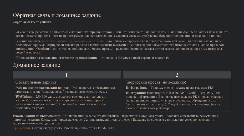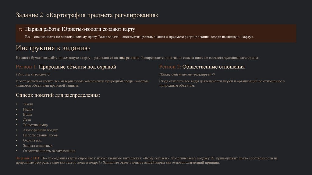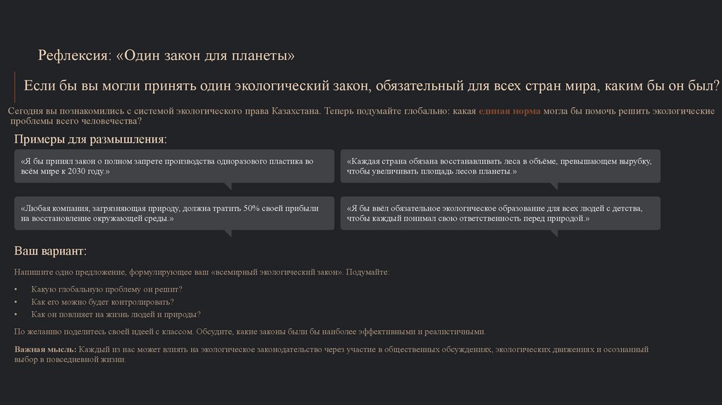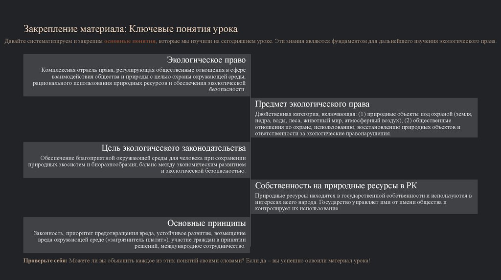 Проанализируйте информацию о экологическом праве, представленную на предыдущих слайдах, и составьте