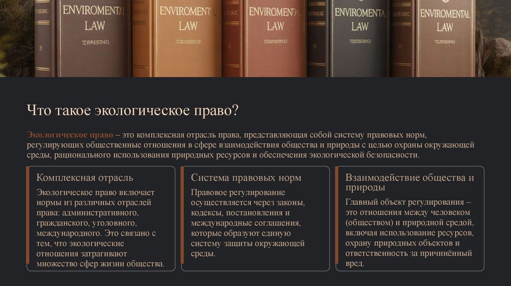 Что такое экологическое право?Экологическое право – это комплексная отрасль права, представляющая собой систему правовых норм,