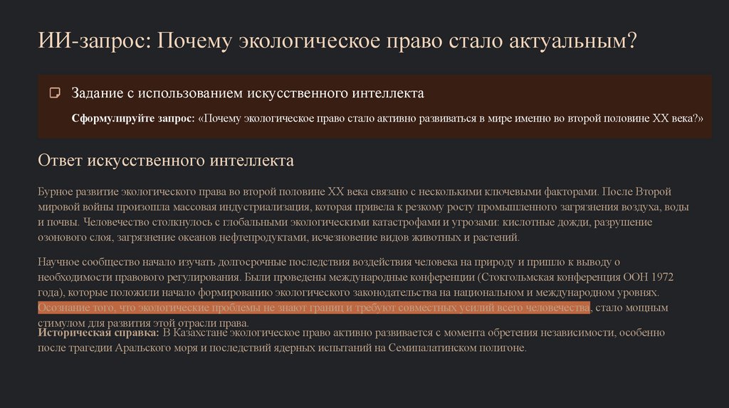 ИИ-запрос: Почему экологическое право стало актуальным?Задание с использованием искусственного интеллекта