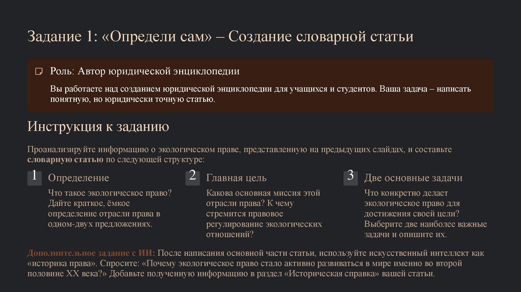Задание 1: «Определи сам» – Создание словарной статьиРоль: Автор юридической энциклопедии