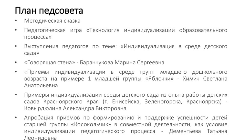 Выступления педагогов по теме: «Индивидуализация в среде детского